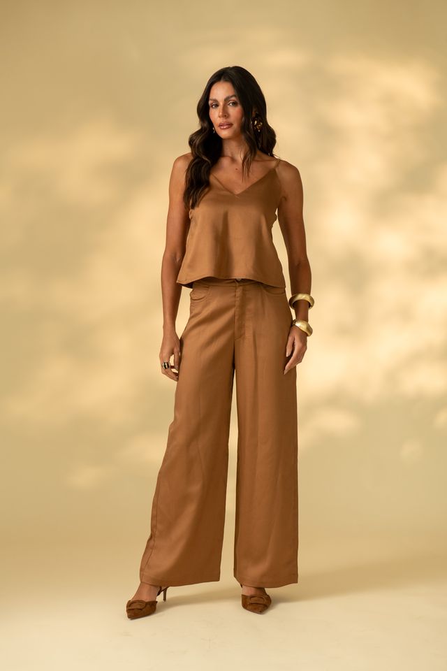 Use com a blusa do conjunto para uma proposta monocromática elegante e sofisticada. Para um visual mais casual, combine com t-shirt básica e tênis. Já para ocasiões especiais, aposte em salto alto e acessórios minimalistas.