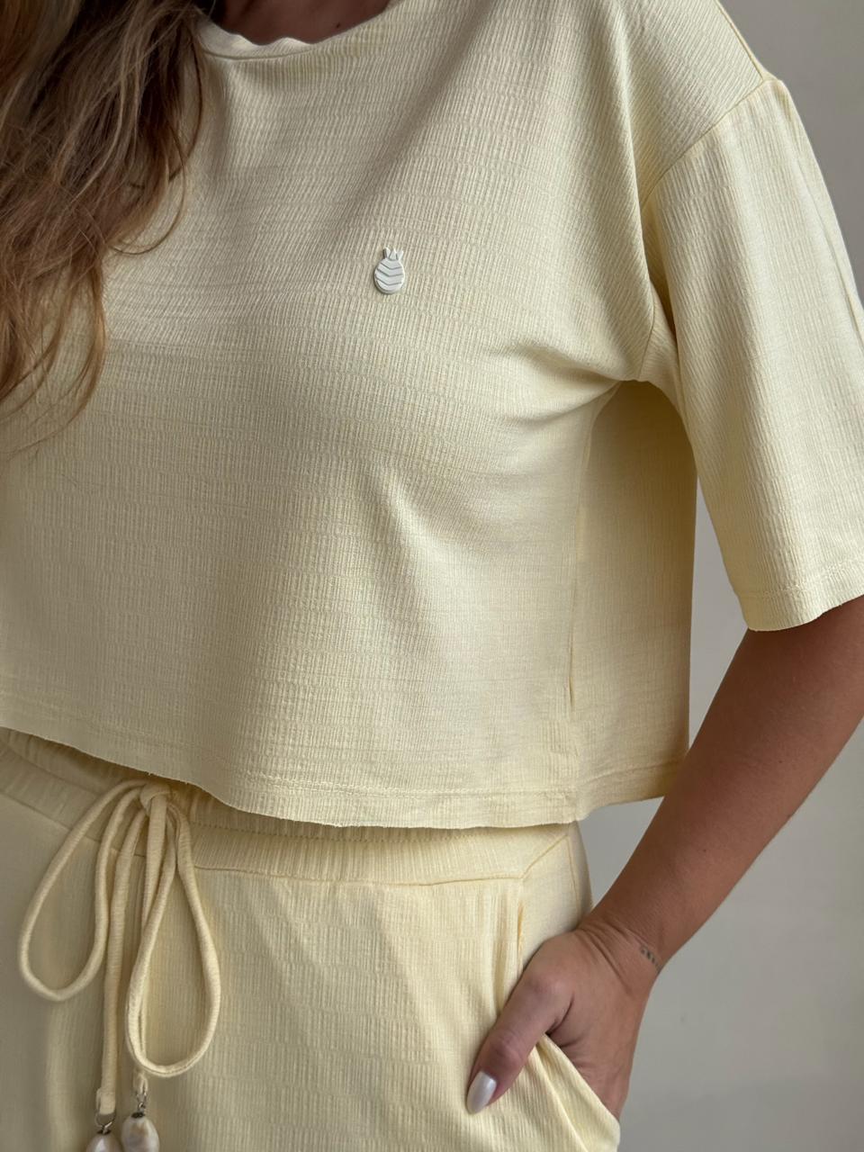 Conforto e estilo em uma peça só! Nossa t-shirt minimalista é confeccionado em malha leve e macia, ideal para o dia a dia. Possui modelagem soltinha, mangas curtas e comprimento cropped que traz um toque moderno e despojado ao visual. O caimento fluido valoriza o corpo sem marcar, oferecendo liberdade de movimento e muito conforto.