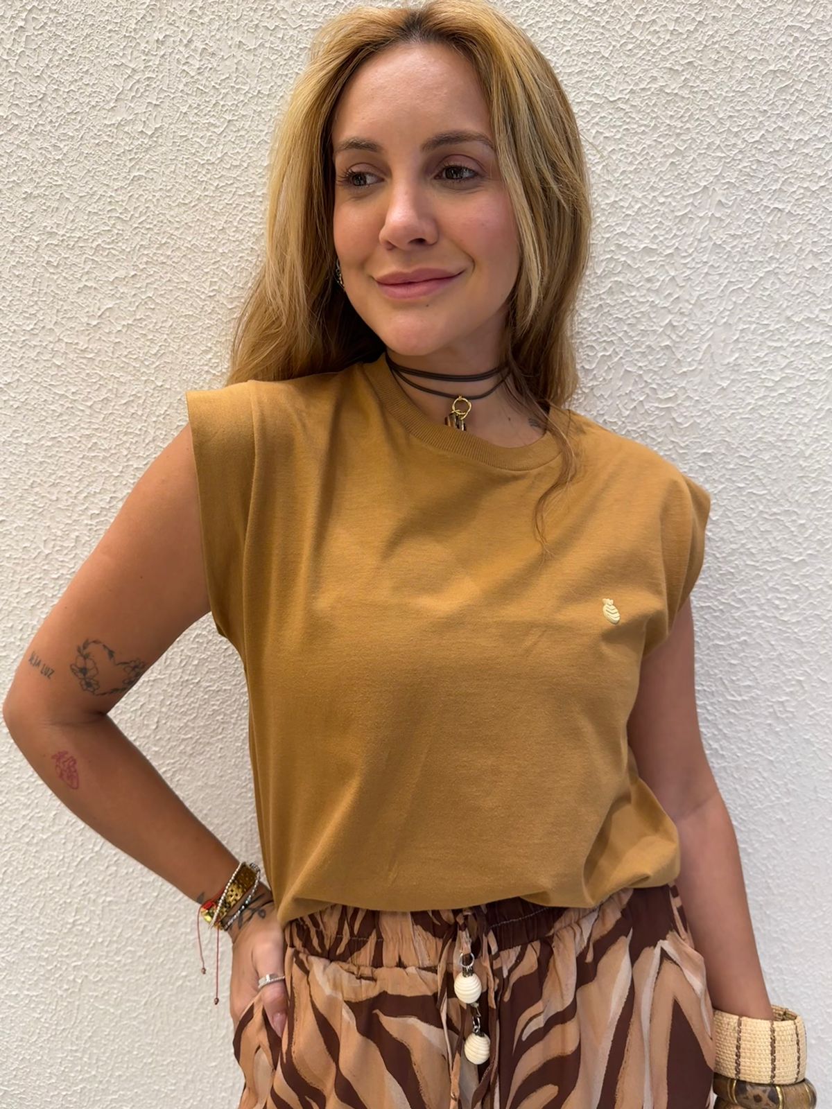 Com um toque boho e cheio de personalidade, a t-shirt é perfeita para quem ama looks leves, confortáveis e estilosos. Confeccionada em malha de algodão com toque macio, ela tem modelagem reta, gola redonda e mangas levemente cavadas estilo muscle tee, que garantem um visual despojado e moderno.