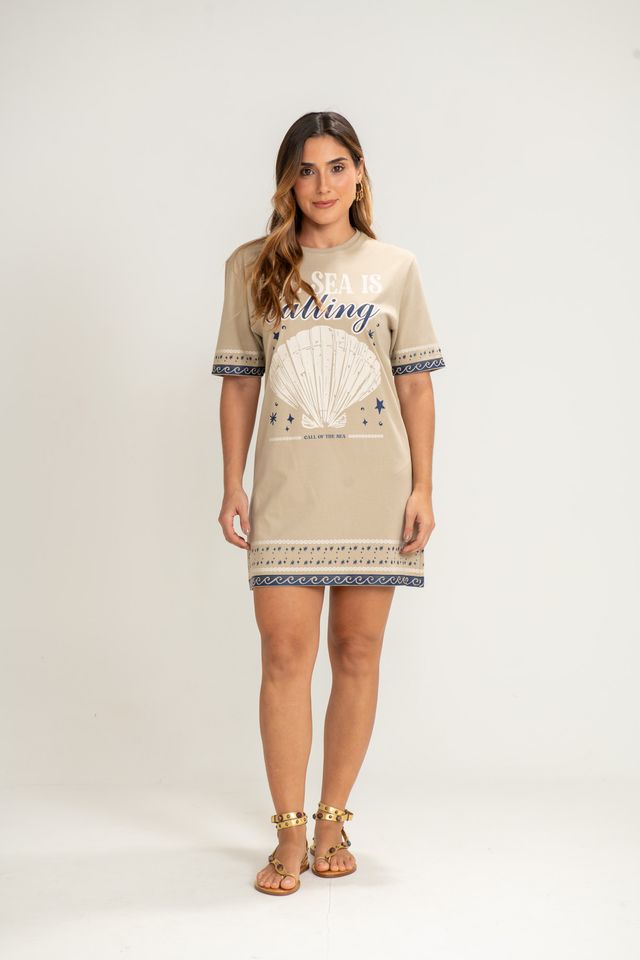 ido macio, possui mangas curtas e acabamento estampado na barra e nas mangas, trazendo um toque extra de personalidade. A estampa frontal completa o visual com uma proposta leve e descontraída, ideal para compor looks versáteis para diversas ocasiões.